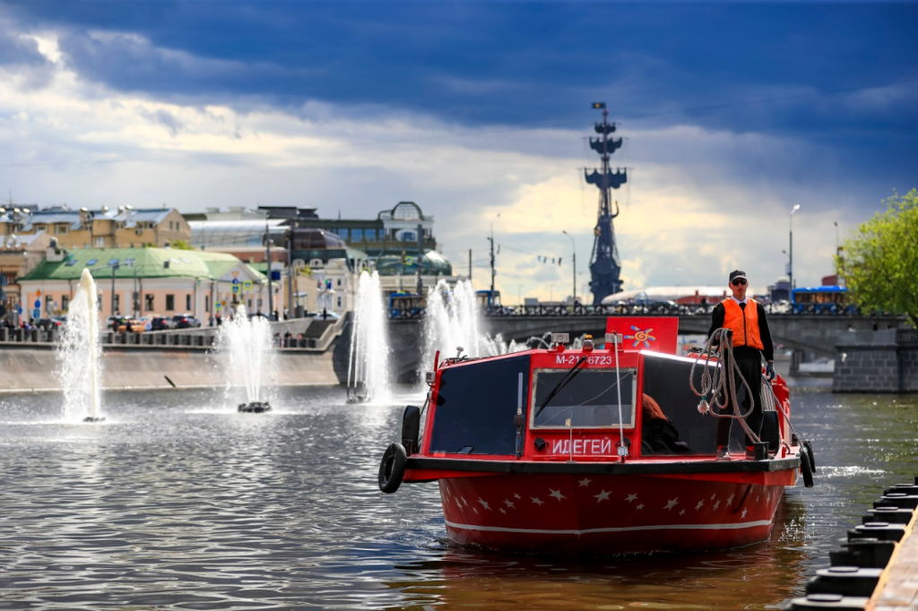 Особое впечатление оставляет каскад фонтанов, неожиданно появляющийся прямо на поверхности реки — динамичная водная инсталляция, которая становится ярким акцентом поездки. В пути гостей сопровождает аудиогид, рассказывающий интересные факты о столице.