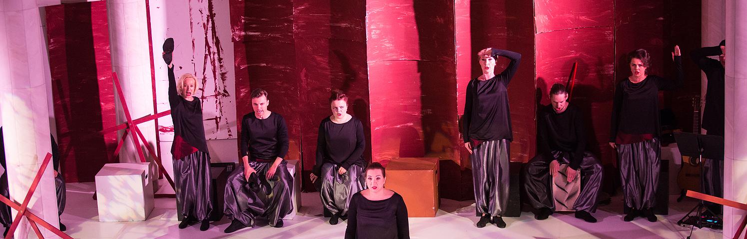 Хоровая опера «Красное» в Московском театре «Новая Опера» им. Е. В. Колобова.