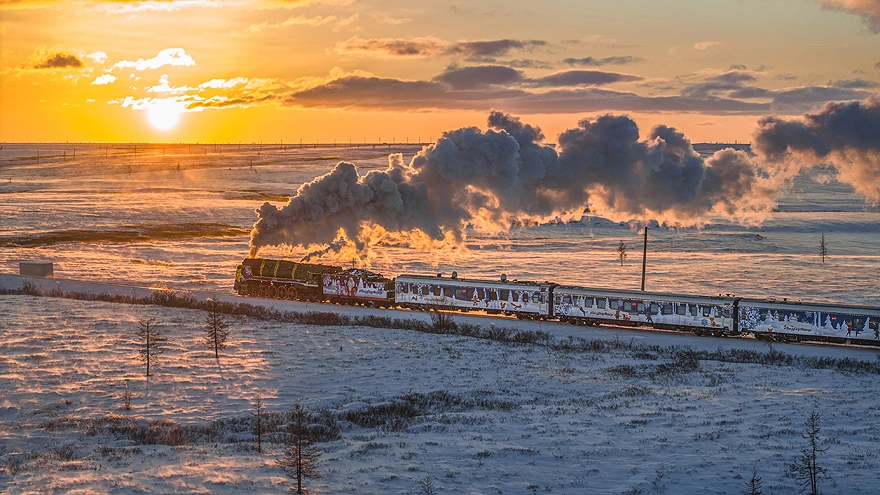 Поезд Деда Мороза едет по всей стране, останавливается в разных городах России.