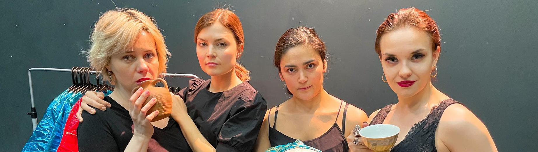 Все роли в спектакле исполняют женщины.