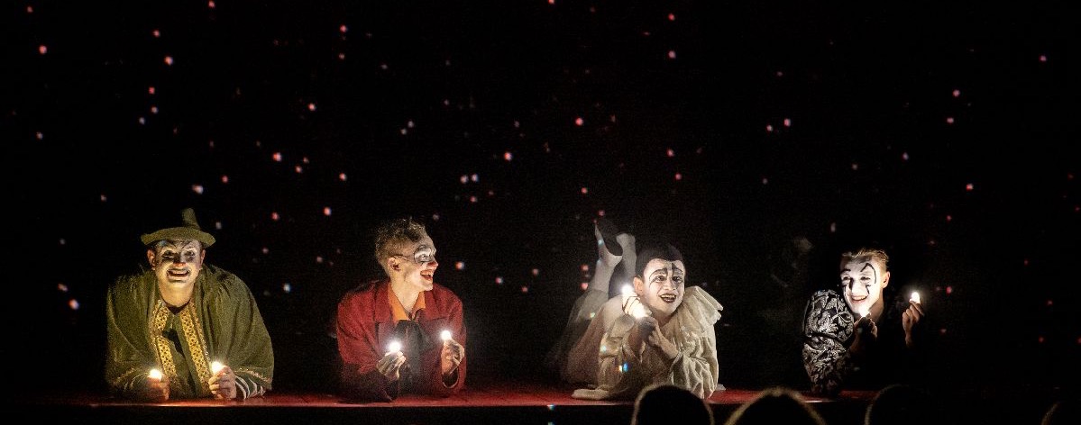 Спектакль использует элементы циркового представления: музыку, акробатику, клоунаду. Через метафору расколотой души артиста он обращается к темам самоидентификации, творческого выбора и цены успеха.
