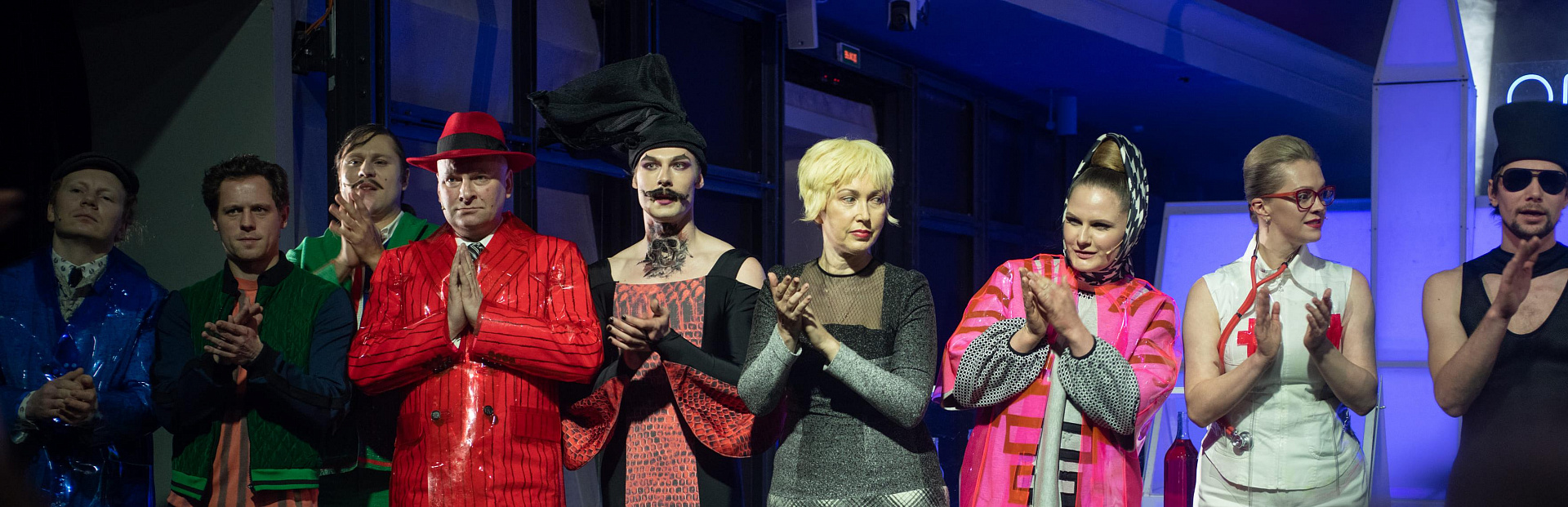 Постановка современная, с экстравагантными костюмами, с музыкальным сопровождением.