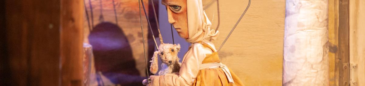 В спектакле участвуют куклы-марионетки.