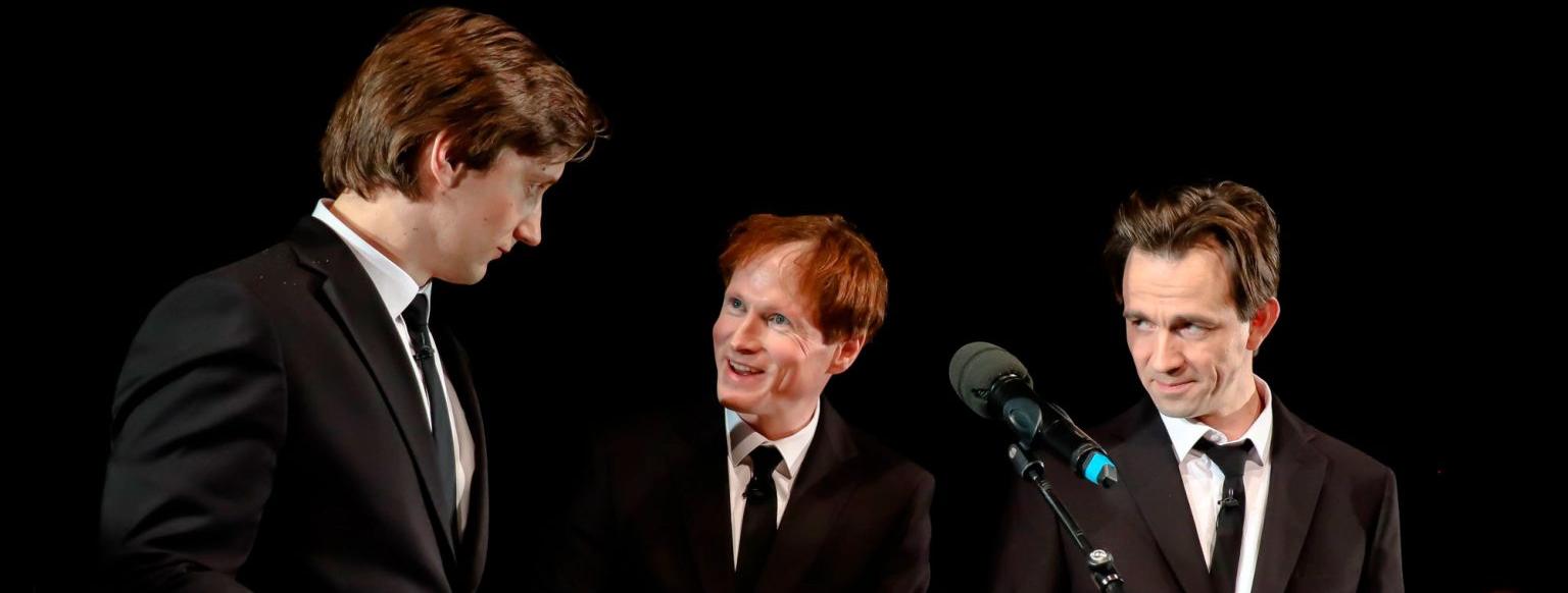 На сцене трое артистов делятся историями о том, как они познакомились с творчеством Жака Бреля и поют его песни под аккомпанемент живого оркестра.