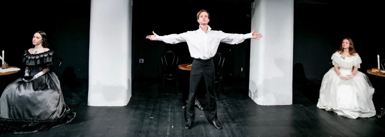 Четыре актера играют поэта в его разных ипостасях - Онегина и Ленского, Черноокую Россети, Додо, Ростопчину, Софи Карамзину, Нину и Маску, Демона и Ангела и других.