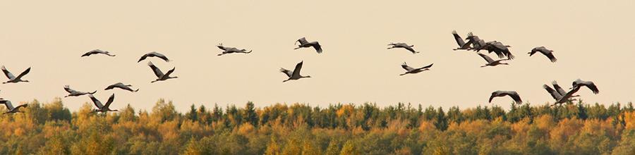 Осенью, перед перелетом в теплые края, здесь собираются около 2000 серых журавлей.