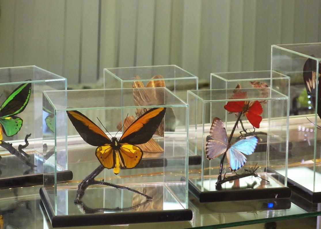 В музее собрана большая коллекция редких насекомых из разных стран мира.