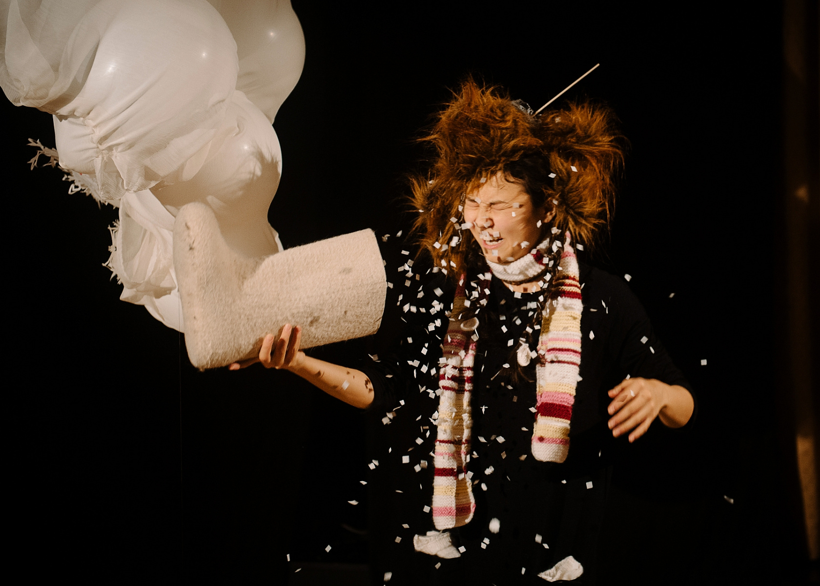 После спектакля юные зрители приглашаются на сцену — там можно всё потрогать и поиграть с актрисой.